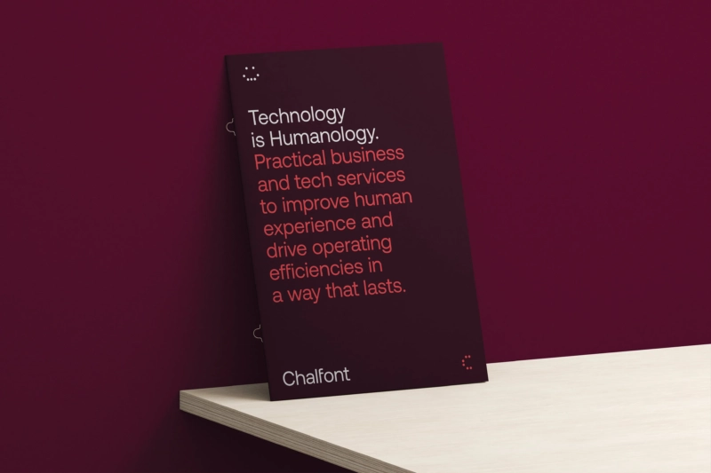 Across the visual identity, people remain central. Photography showcases the real Chalfont team, and a custom icon set, derived from the logo’s grid and geometry, connects brand and capability. A new, energetic colour palette brings warmth and confidence, standing apart from the cold and expected tones that dominate the tech landscape. The result is a brand identity that puts people at the heart of technology.