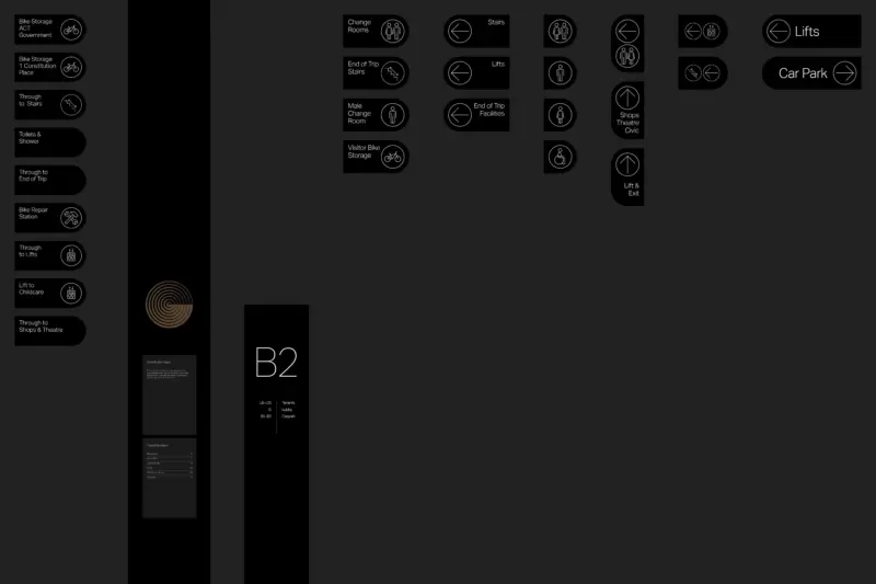 Purposefully positioned across differing materials, a considered sequence of signage pieces guides visitors through the complexities of a multi-level site with a community of commercial tenants, basement carpark and end-of-trip facilities, and incorporating retail signage via an activated pedestrian laneway that connects Constitution Avenue to the Legislative Plaza and the Canberra Theatre.